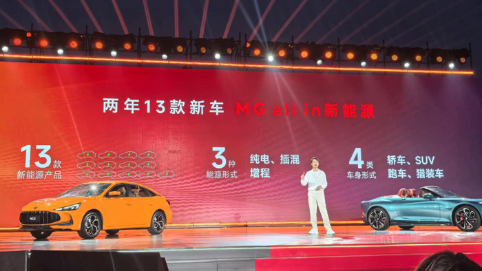 根据上汽MG名爵“新帅”陈萃透露,未来两年将投放13款新能源车型,覆盖纯电、插混、增程三大技术路径,品类还将包括轿车、SUV、跑车和猎装车。