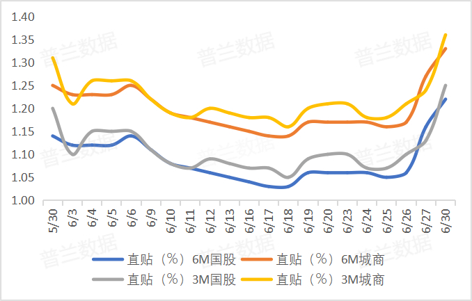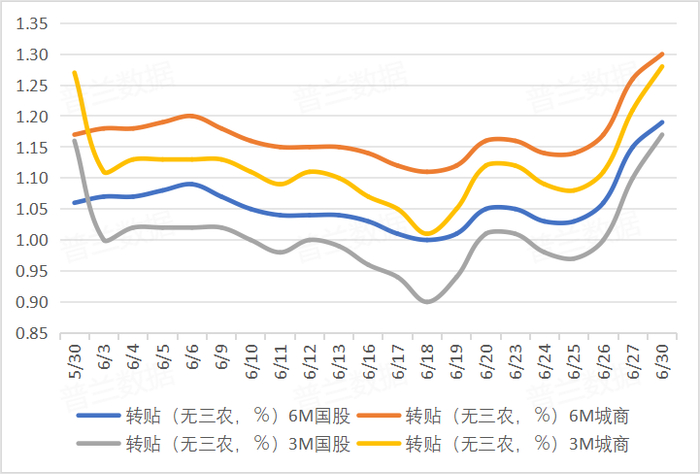 据普兰金服数据显示,2025年6月6M国股无三农价格在1.00%-1.19%,月内波动19BP;3M国股无三农价格在0.90%-1.17%,月内波动在27BP。6M城商无三农价格在1.11%-1.30%,月内波动在19BP;3M城商无三农价格在1.01%-1.28%,月内波动27BP。