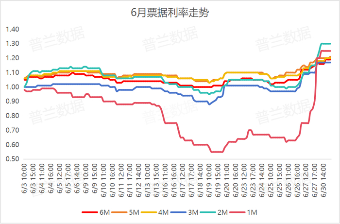 2025年6月票据利率呈现“月初低开略涨,中下旬触底回升,月末大幅冲高”的走势。