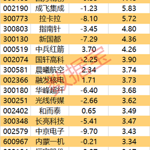 此外,还有成飞集成、拉卡拉、指南针、新国都等热门股遭主力资金净流出居前。