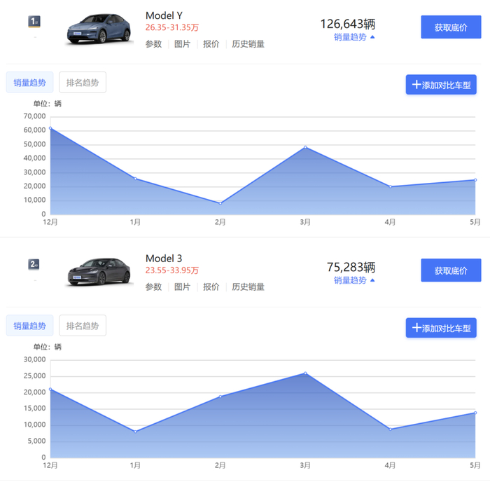 零售数据显示,今年1-5月,特斯拉中国销量为201926辆。其中,Model Y为126643辆;Model 3为75283辆。市场认为,Model Y销量低迷主要原因是改款,新款Model Y针对外观、内饰设计及配置等方面进行升级。业内认为,车型更新换代的步伐已成为特斯拉发展的瓶颈,特别是在中国本土车企不断推出新车型对其形成销售压力的背景下,产品单一、更新换代步伐相对缓慢的特斯拉也面临不小的挑战。