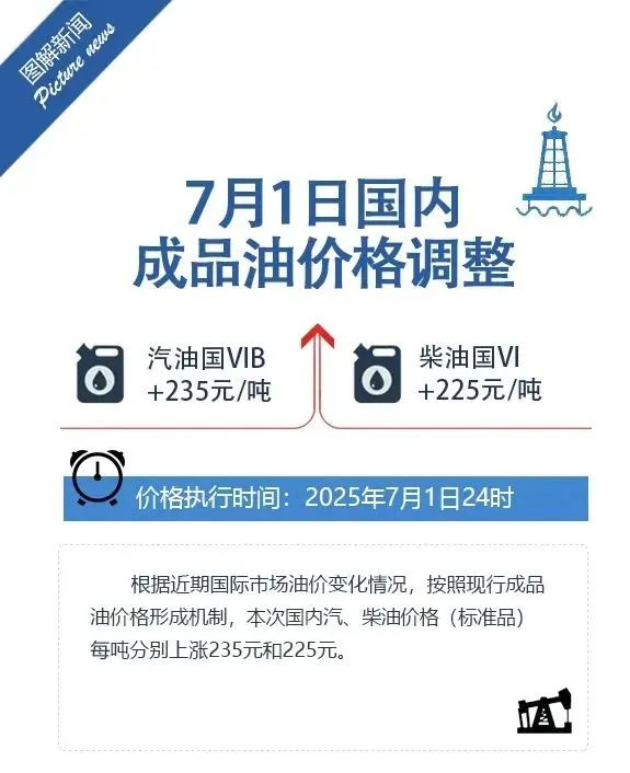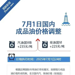 7月1日,国家发改委发布消息称,自24时起,国内汽油价格和柴油价格分别上调235元/吨和225元/吨。折合升价,92号汽油上调0.18元,95号汽油和0号柴油均上调0.19元。