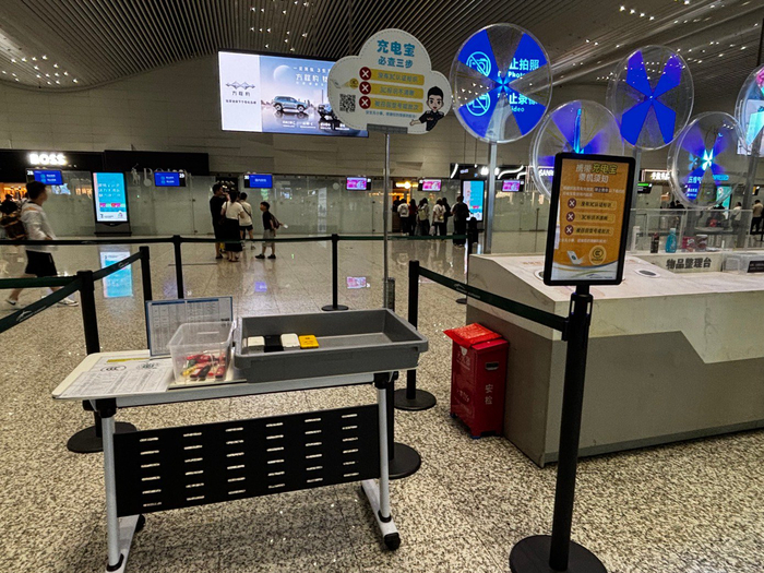7月1日,踏入国内任何一座繁忙机场的出发大厅,目光所及之处,“充电宝新规”的提示信息随处可见。机场的语音广播循环往复,值机柜台前立着醒目的提示,机场人员手里高举印有扫码检查的提示牌,从安检入口前到安检处,一个充电宝需要通过重重人工检查,确认无误后才能被旅客带上飞机。