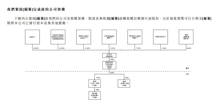 IPO前,庄莉持股为44.85%,南山资产管理旗下NanshanXingyu持股为16.94%,HIKE Capital持股为11.4%,ACE Redpoint持股为9.43%,TH EDU Capital持股为7.7%,中移北京基金持股为3.64%。