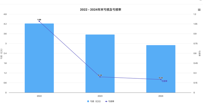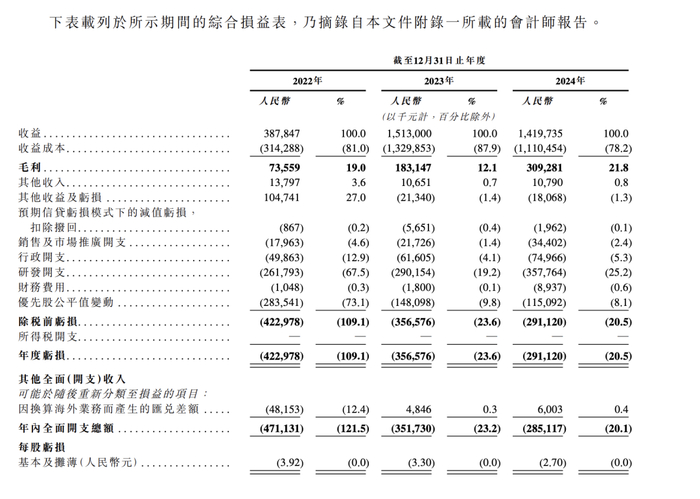 在亏损方面,2022年、2023年及2024年年度亏损4.23亿元、3.56亿元及2.91亿元,年度亏损率分别为109.1%、23.6%、20.5%,同期净亏损也收窄18.5%。