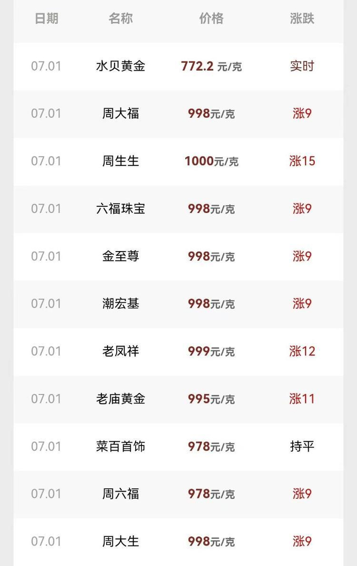 今年以来,金价一波三折,先是一路高歌猛进,屡次刷新历史高点超过20次后,开启波动调整模式,近期更是连续两周下跌。6月30日,现货黄金一度跌至3250美元/盎司,刷新一个月新低。受国际金价回落影响,国内金饰价格应声下调。国内品牌金饰价格全线跌破1000元/克关口。周大福、周生生等品牌足金饰品报价集中在980-999元/克。