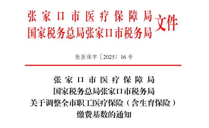 6月26日,张家口医保局、税务局联合发布了《关于调整全市职工医疗保险(含生育保险)缴费基数的通知》,明确自7月1日起调整张家口职工医保缴费基数。