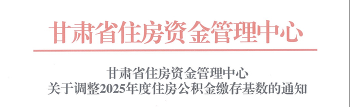 6月30日,甘肃省住房资金管理中心发布了《关于调整2025年度住房公积金缴存基数的通知》。