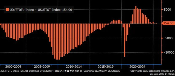 由于谈判的断断续续,6月以来美债市场对关税主题的关注度明显下降,关税也尚未对高频贸易数据以外的硬数据产生重大影响,对通胀的传导可能最快到6-7月CPI中才能得到体现。我们认为,市场已经基本消化了10%的普征税率,下半年关税主题预计有所降温。如果关税的不确定性挫伤消费者信心,居民削减可选消费,进而推动核心服务通胀放缓,部分对冲商品通胀的上行,就会产生通胀被高估的预期差。
