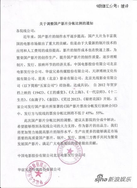 那年贺岁档前,中影、华谊、博纳、星美、光线五家电影制作发行公司联合发布了一个通知。