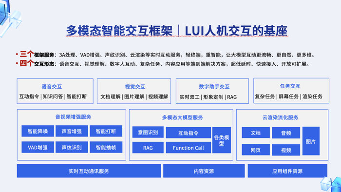 三个服务,即音频增强服务、多模态大模型服务、云渲染流化服务;