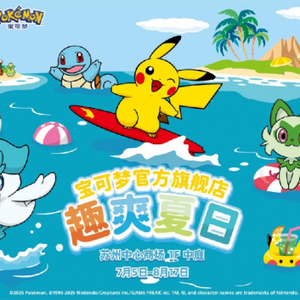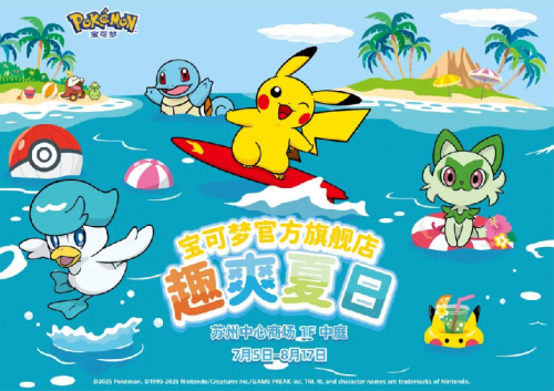 这个盛夏,苏州中心商场摇身一变成为充满童趣的"萌趣次元"。7月5日至8月17日,"宝可梦官方旗舰店-趣爽夏日"快闪在北区1楼中庭启幕,300㎡的空间打造夏日沙滩主题场景,7米高的冲浪皮卡丘气模成为吸睛焦点。除了首发冲浪板皮卡丘毛绒系列与海地鼠夏日限定款,7月5-6日宝可梦真人互动环节,更让训练家们能零距离合影留念。