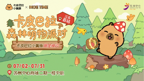 而风靡全网的“佛系顶流”卡皮巴拉小黄豚则于7月2日至7月31日登陆苏州中心商场二期一楼中庭,开启"森林萌物派对"江苏首站。森林系列限定产品、潮玩爆款以及多重福利,让消费者能沉浸式体验与卡皮巴拉小黄豚的森林奇遇,在慵懒萌态中享受“情绪休假”。