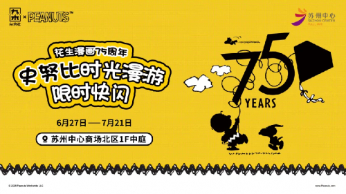 正值75周年庆的史努比也携怀旧浪潮而来。6月27日至7月21日,"花生漫画75周年・史努比时光漫游"江苏首展在北区一楼构建复古空间,不仅限量发售夏日主题与生日纪念款周边,更特别定制苏州城市限定礼赠。6月28日,史努比本尊的亲临更是让粉丝们能近距离感受其经典魅力。