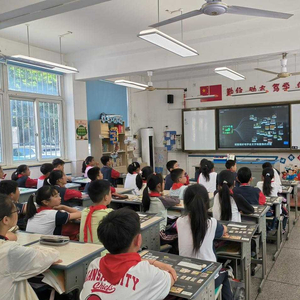 陈娟介绍,该校去年起引入“飞象人工智能通识课”,采用螺旋式进阶设计,10门、160节分层进阶的课程体系,贯穿真实生活场景。记者现场看到,在“智能双师”授课模式下,线上大屏的老师设计课程任务,线下课堂老师把控课堂节奏,组织学生互动讨论,并对讨论成果实时评价。