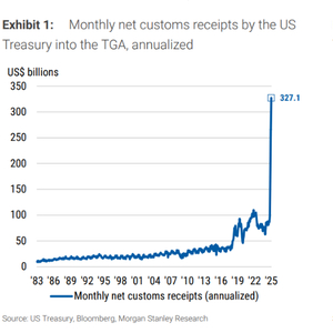 美国关税收入年化已高达3270亿美元,大摩:这么庞大的税收,无论谁付,对经济都不是好事