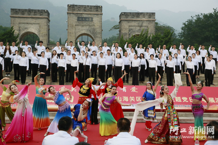 河工新闻网讯(记者朱润胜 通讯员苏馨怡)为礼赞党的光辉历程,赓续红色血脉,在中国共产党成立104周年之际,6月30日,“我爱关城 关城有爱——‘我心向党 唱响关城’秦皇岛市山海关区‘七一’主题党日合唱展演”在长城脚下启幕。来自全区18支合唱队伍的1300余名党员及干部职工,以激昂歌声奏响爱党爱国强音,展现新时代奋斗者昂扬风貌。