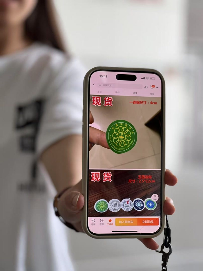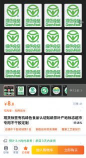 记者注意到,不少商家会对贴纸链接的关键词稍作处理。例如很少有商家直接打出“绿色食品标志贴纸”的字眼,而是稍作改动,变成“绿色食品贴纸”“食品不干胶贴纸定制”“茶叶食品标签”等。“中国环境标志”则常常被改成“绿色环境标签”“家具环保贴”等。