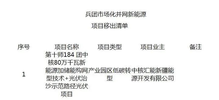 关于将73团中核20万千瓦绿色能源园区光伏项目、61团疆北能源10万千瓦新增负荷配套光伏项目移出兵团市场化并网新能源发电项目清单的公示