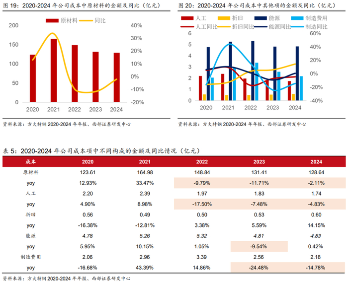 3)成本:公司通过从铁前工序到全流程的系统性降本和精细化的管理,使得2022-2024年原材料成本、人工成本、制造成本都出现了较为明显的下降;