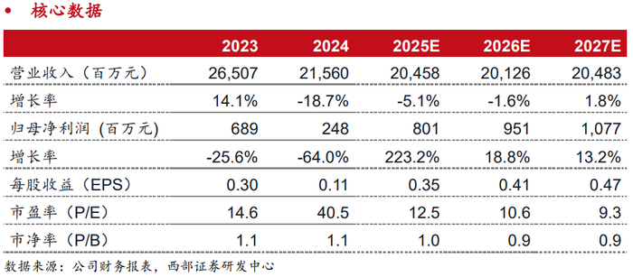 【核心结论】我们预测,2025-2027年公司归母净利润分别为8.01、9.51、10.77亿元,EPS为0.35、0.41、0.47元,PE为13、11、9倍,给予2025年16倍PE,目标价为5.70元/股,首次覆盖,给予“买入”评级。