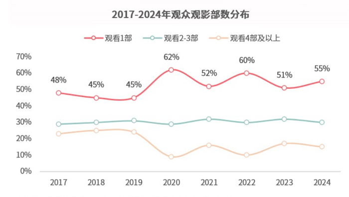 如果说低频观影人群的“垄断”主要影响的是头部影片,那么观众期待提升则让腰部影片的处境尤为艰难。