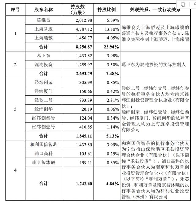 其中,葛卫东直接持有公司3.98%股权,混沌投资由葛卫东实际控制并直接持有公司3.50%股权,二者合计持有公司7.48%的股份。