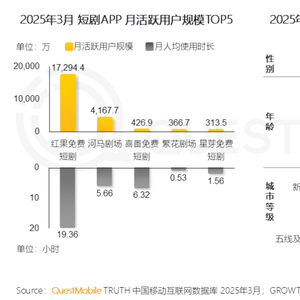 据QuestMobile数据,截至2025年3月,红果凭借1.73亿的月活用户,在短剧App赛道上断层领先,并跻身在线视频App月活排名第六,直逼优酷的1.85亿月活用户。