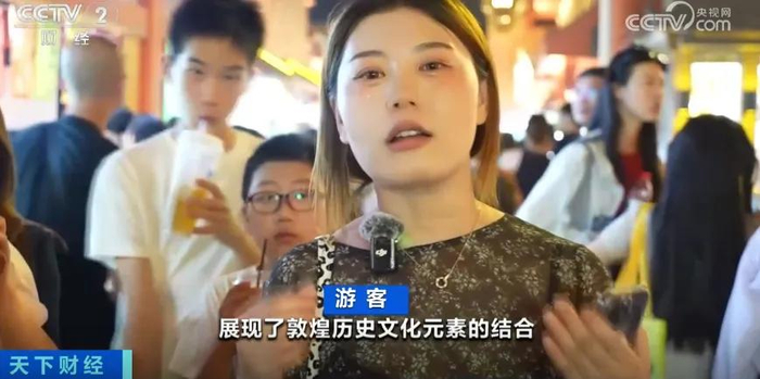 游客:踏上这条街,商铺设计给我带来非常大的视觉冲击,我感觉这条街展现了敦煌历史文化元素的结合。