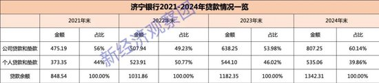 与此同时,济宁银行的个人贷款占比在2021年末达到了44%,2022年末飙升至50.77%,虽然2023年和2024年连续下降,至39.86%左右,但仍超过以个人贷款业务见长的城商行巨头宁波银行,后者2024年末个人贷款占比为37.79%。