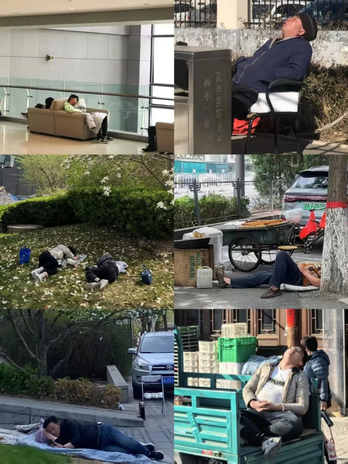 走进山西农贸市场,你会发现,中午时分摊主一水全躺下,土豆白菜旁边呼噜声此起彼伏;快递站里,包裹堆成“睡眠小堡垒”,快递小哥直接躺进去睡个饱;公园长椅、公交车座位,甚至草坪、路边台阶,哪里都能见到睡姿千奇百怪的“午睡大军”。