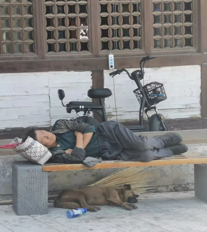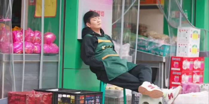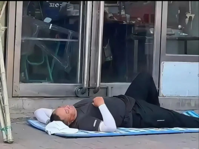 餐厅门口常见“午休中,勿扰”字样,卷帘门拉下一半,透过玻璃能看到服务员趴在拼桌上睡觉,后厨大姐席地而卧,枕着面粉袋。