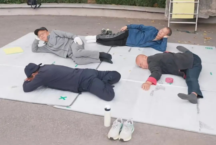 老人们铺上凉席,戴上墨镜,插着收音机,旁边立着“勿扰,正在养生”的牌子;年轻人装备更齐全,露营垫、充气枕、眼罩三件套一应俱全,主打一套“都市轻睡眠风”。有游客发视频感慨:“整个公园仿佛变成大型午睡集体现场。”