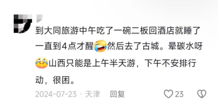 更有甚者,下午三点左右仍有游客碰壁,无奈发帖调侃:“山西饭店老板真把午睡当KPI,想吃饭得错峰。”