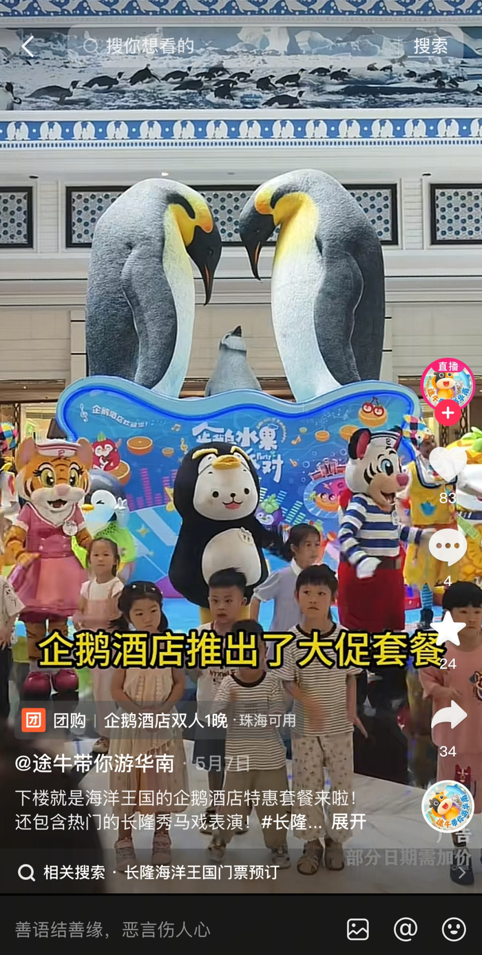 途牛则是用实景直播吸引其会员体系外的新客,在抖音上,形成了超值券+实景体验的心智。