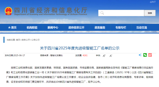 近日,四川省经济和信息化厅公示了四川省2025年度先进级智能工厂名单。其中,成都高新区新材料龙头企业成都硅宝科技股份有限公司(简称硅宝科技)建设的基于工业互联网平台的高性能密封材料智能工厂有幸入选。