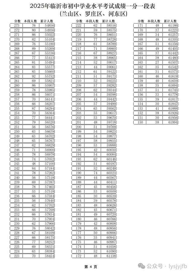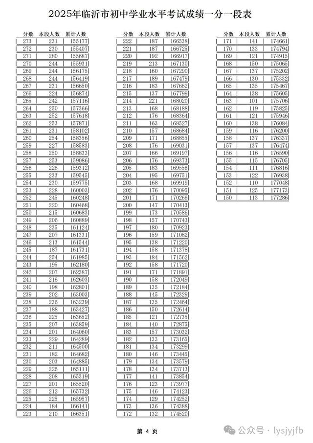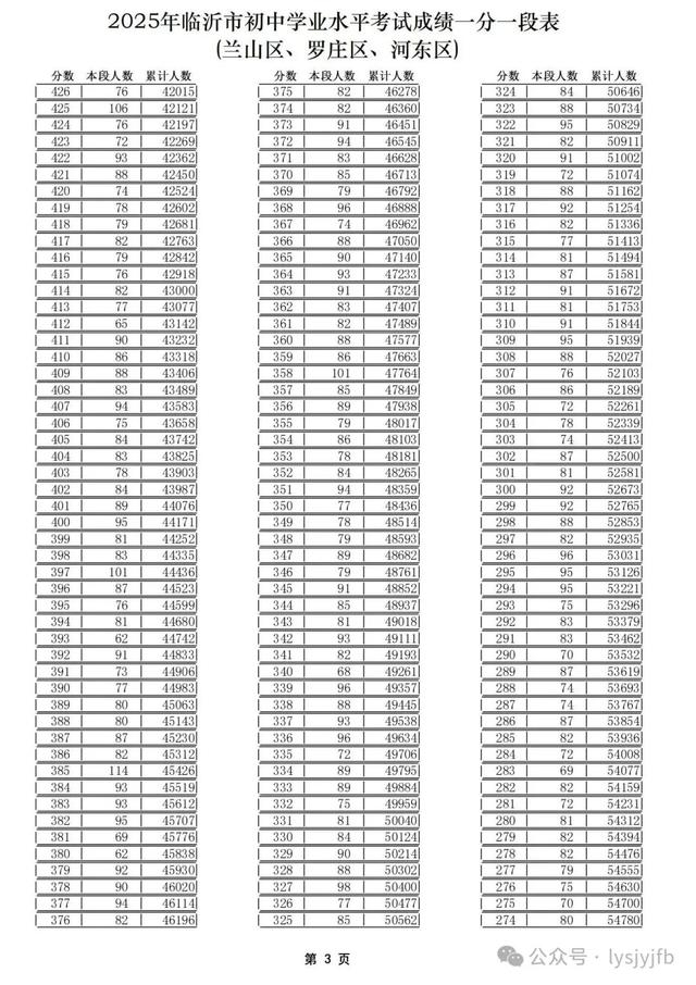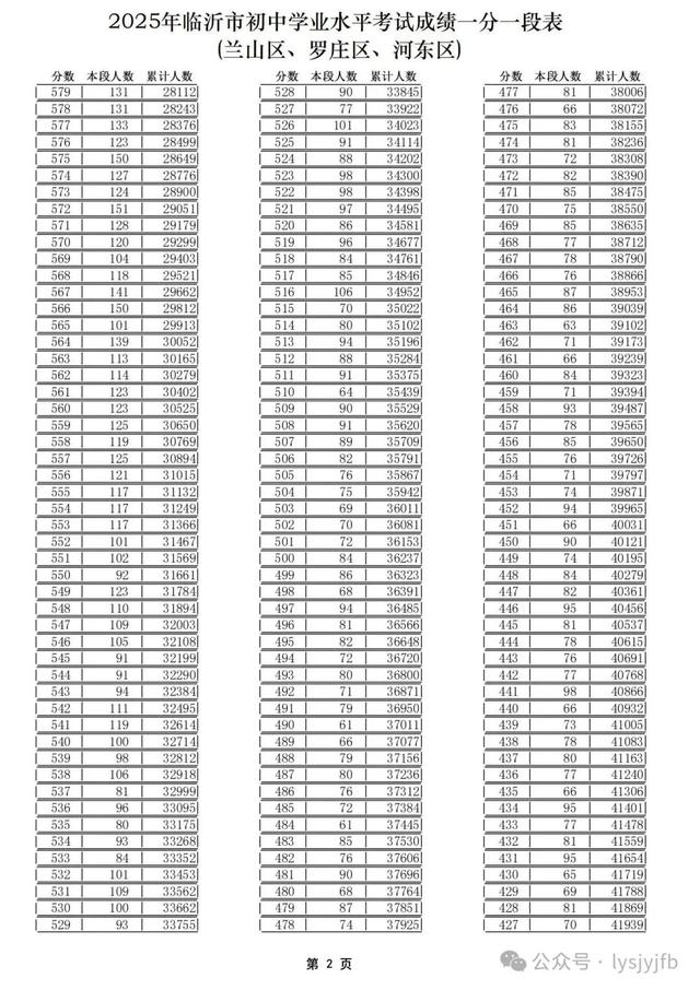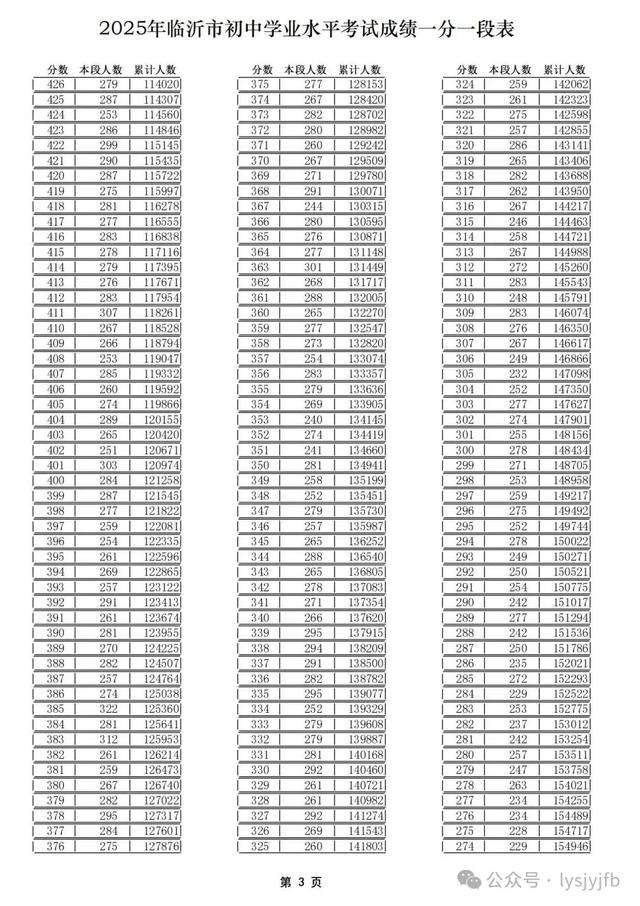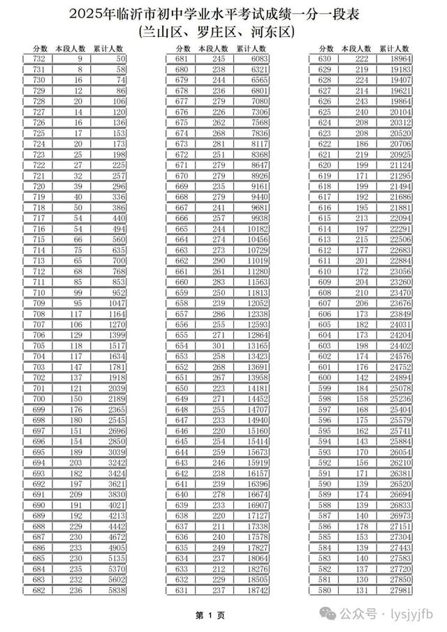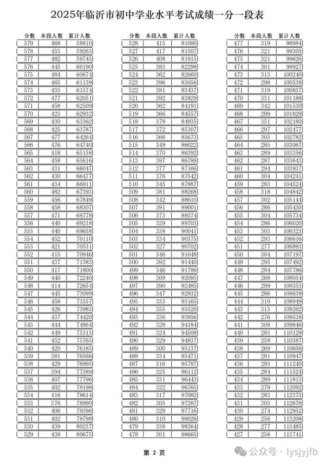 2025年临沂市初中学业水平考试成绩一分一段表(三区)