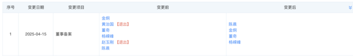 天眼查显示,今年4月,相宜本草董事备案发生变更,董事黄治国、赵玉刚退出,目前仅剩陈晨、金炯、董奇和杨嵘锋4人。