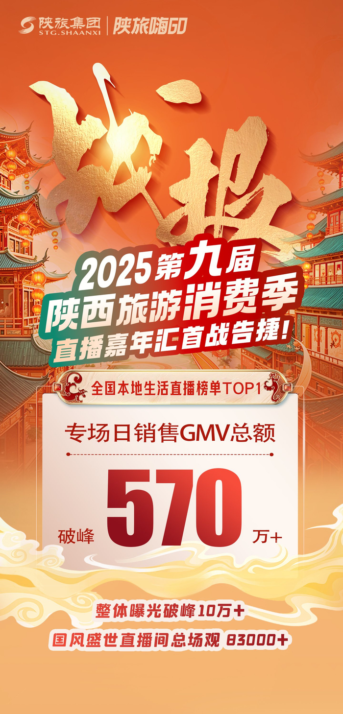 “这并非一场普通的直播带货或娱乐表演,而是一次打破边界、融合创新的文化与消费深度对话……”近日,第九届陕西旅游消费季直播嘉年汇首战告捷,专场日销售GMV总额突破570万元。陕旅集团奉上了一场视听与消费盛宴,更为陕西暑期旅游市场注入强劲动能。