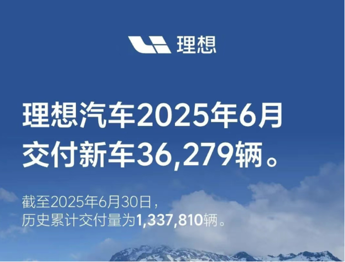 在2025年6月,理想汽车交付量为36279辆,累计交付量达1337810辆。