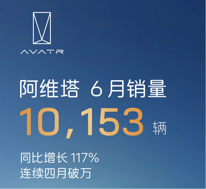 2025年6月,阿维塔的销量达10153辆,同比增长117%,喜人的是,其已经实现连续4个月销量破万。