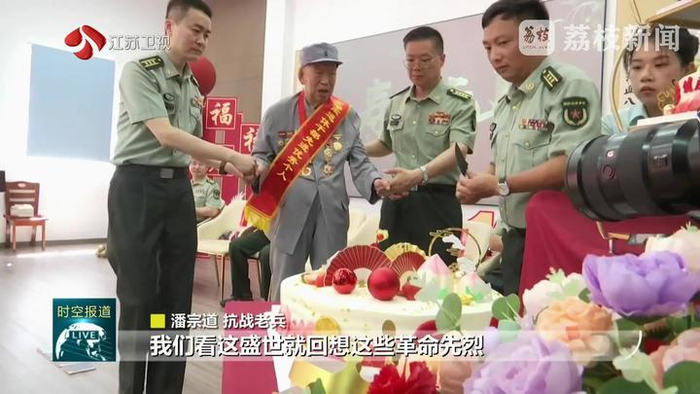 各地还为老党员们送去关怀和慰问。7月1日,抗战老兵潘宗道在无锡干休四所迎来百岁诞辰,还收获了一份珍贵礼物:“全国离退休干部先进个人”证书。从抗日战争、解放战争、抗美援朝战争中一路走来,潘宗道5次荣立战功。自1983年离休后,他不知疲惫地奔走于学校、军营和社区,向人们讲述抗战历史。