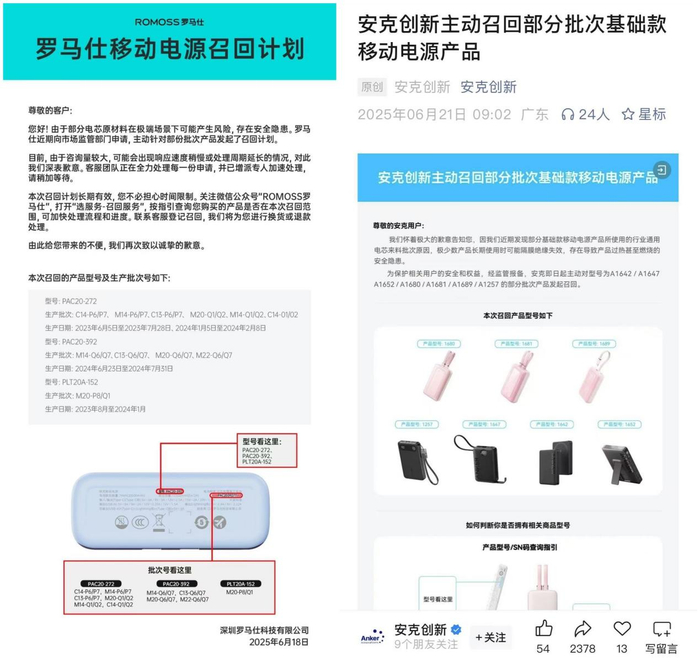 这场召回风波中,受到影响的不仅仅是罗马仕、安克创新两家品牌的超百万台充电宝。