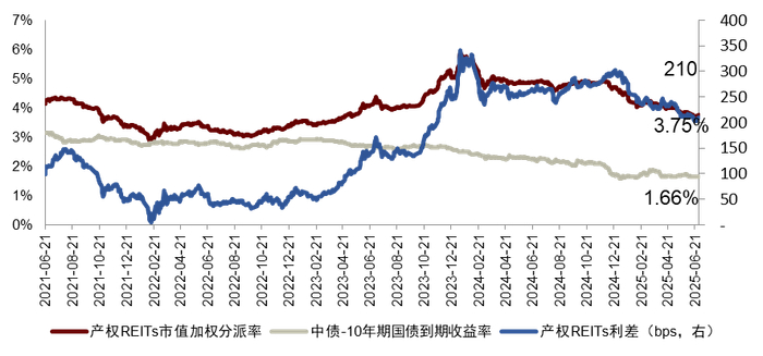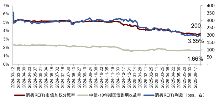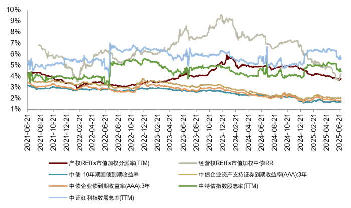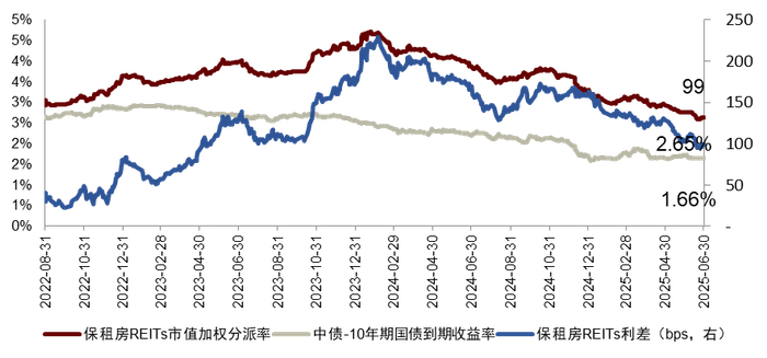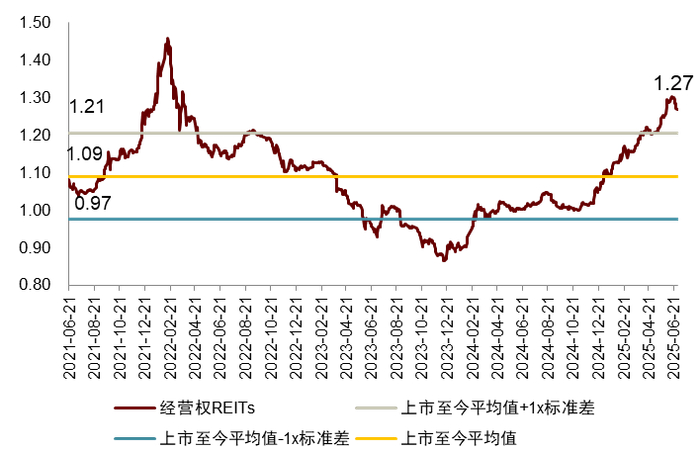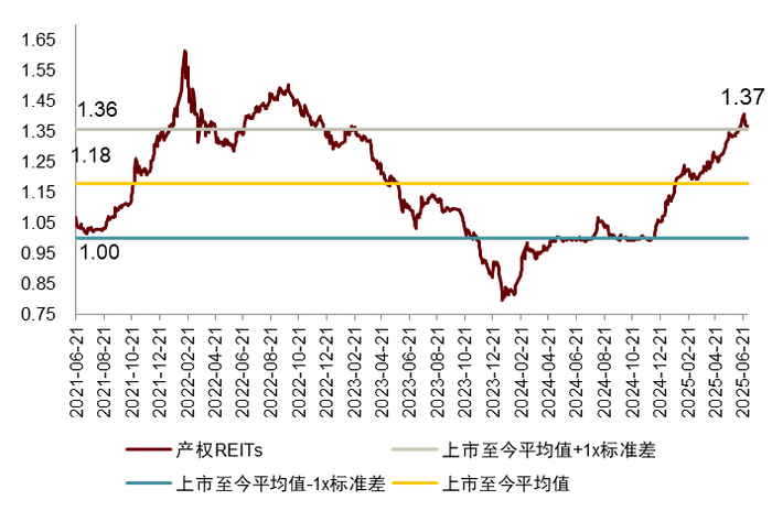 注:1)数据截至2025年6月30日,数据频率为月度;2)取各REITs最新披露的账面价值测算P/B