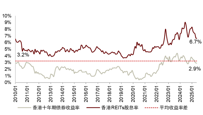 图表36:中国香港REITs股息率与香港政府十年期债券收益率对比
