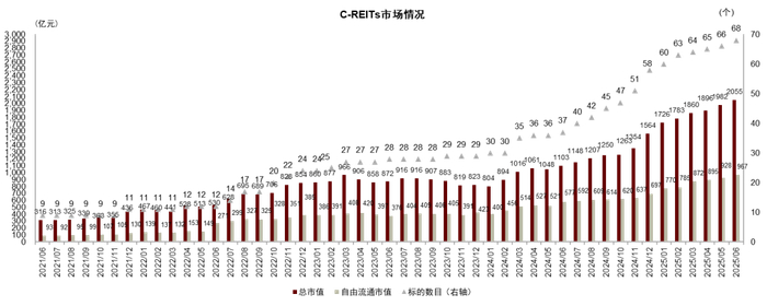 图表2:截至6月30日,C-REITs总市值为2055亿元