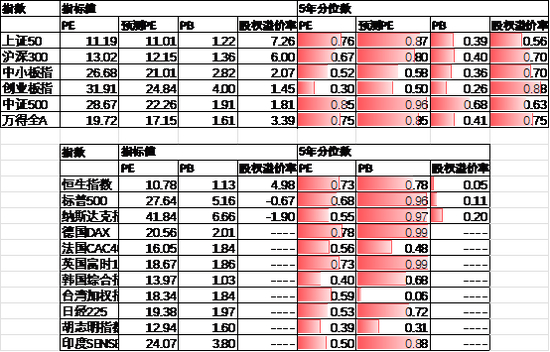 近期万得全A预测PE17.15倍,处于85%分位水平,股权溢价率3.39%,处于75%分位水平。市场估值分位数位于中性区间。