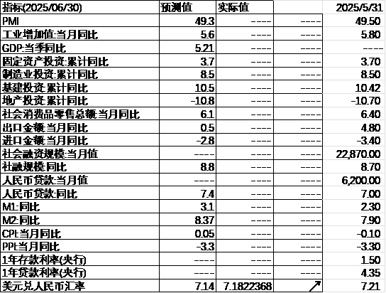 上周,央行进行3000亿元MLF操作,同时本月有1820亿MLF到期,本月MLF净投放达到1180亿元,为连续第4个月加量续作,显示央行对资金面的呵护态度。往后看,虽然短期内贸易冲突短期有所缓和,但中长期维度看逆全球化没有转向迹象,后续关税仍有可能反复。内需方面,进一步降息可能需要等待9月美联储FOMC会议,因此需要财政进一步发力带动居民信心回升及经济企稳。不过这一过程需要一定时间,期间宏观数据仍会面临一定波动。海外方面,美国发布5月PCE数据,同比上升2.7%,超出市场预期的2.6%,显示美国通胀压力有所显现。中东方面,以色列与伊朗之间的签订停火协议,中东地缘风险缓和,油价大幅回落。降息预期方面,美联储官员再度释放降息言论,市场降息预期有所增加,7月降息的预期由14%增加至19%。
