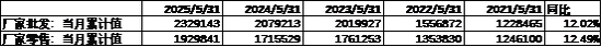 汽车销量方面,25年5月汽车批发及零售销量同比增速分别为12.02%及12.49%,汽车销量维持较高水平。