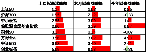 A股表现来看,上周主要板块有所上行,其中上证50涨1.27%,涨幅最小;创业板涨5.69%,涨幅最大。中东军事冲突缓和背景下市场风险偏好回升,A股有所上行。偏股基金指数涨2.86%。